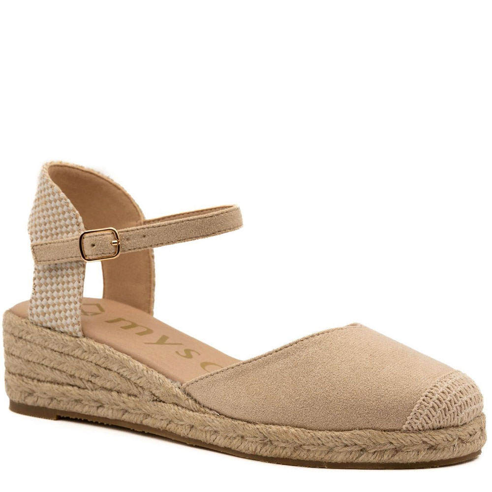 Zapatillas Cuña Esparto Mujer Mysoft 24M102 Negro Beige Platino