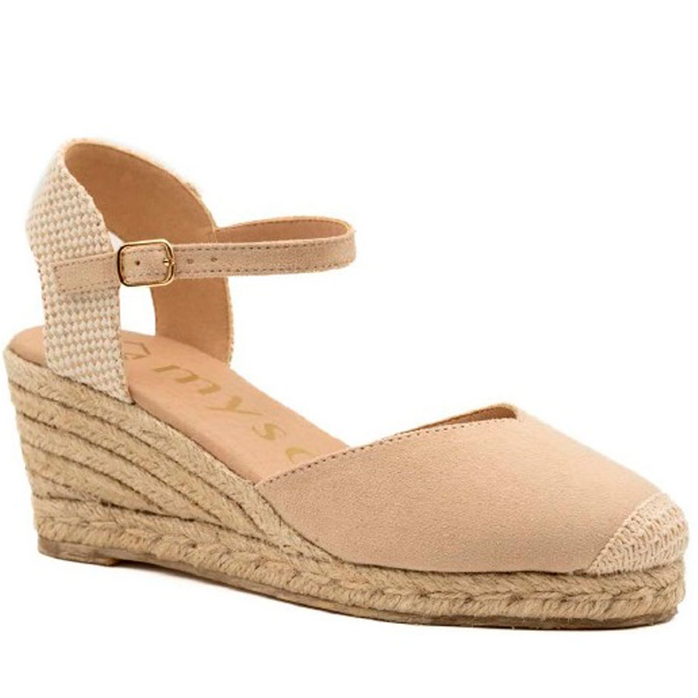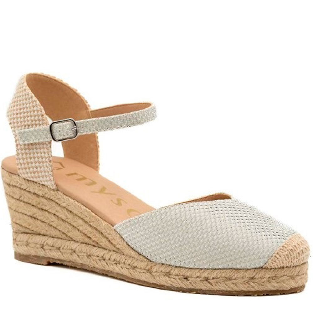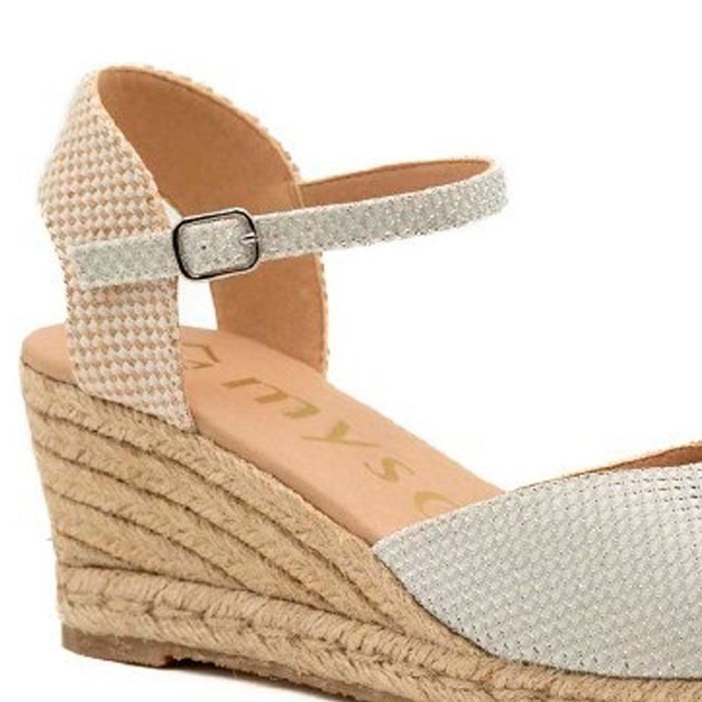 Zapatillas Cuña Esparto Mujer Mysoft 24M116 Plata y Beige