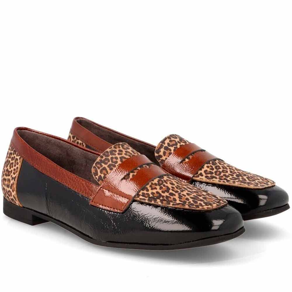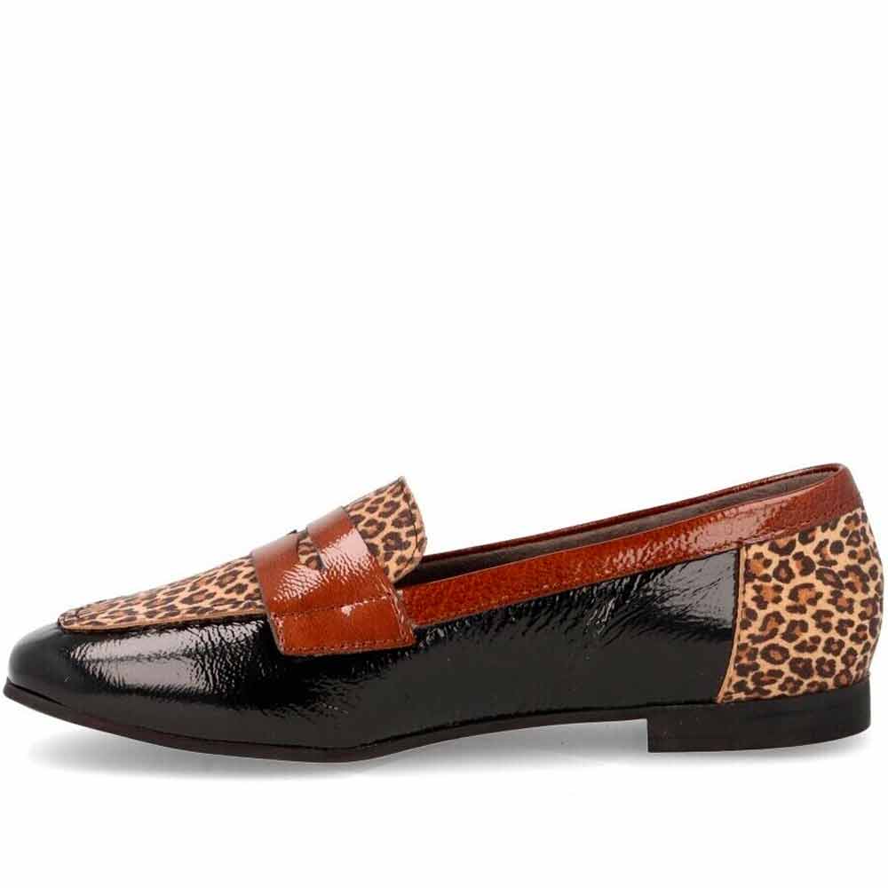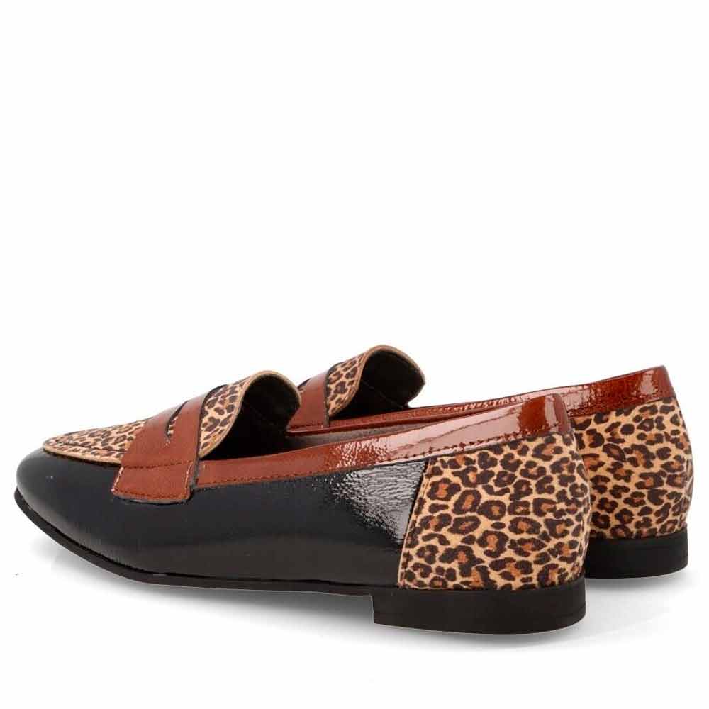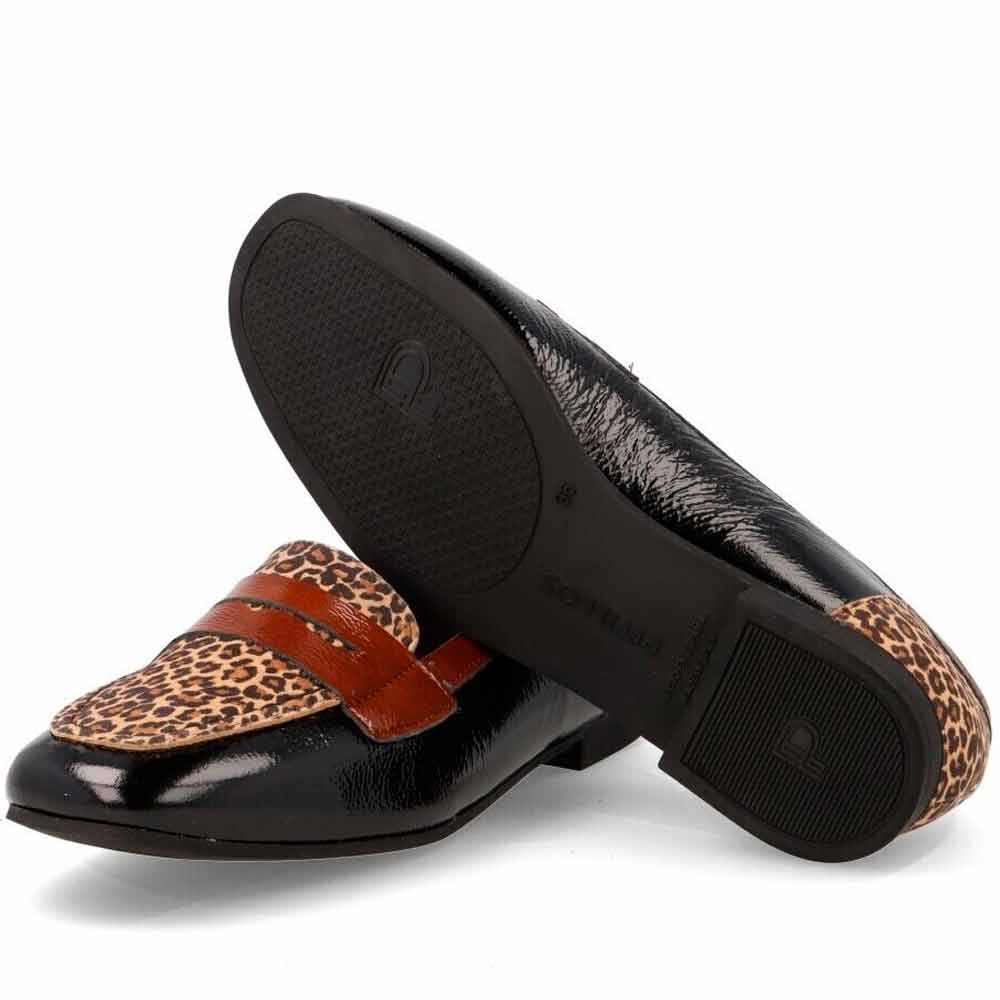 Zapatos Piel Mocasín Mujer Pitillos 10870 Negro con Piel Leopardo